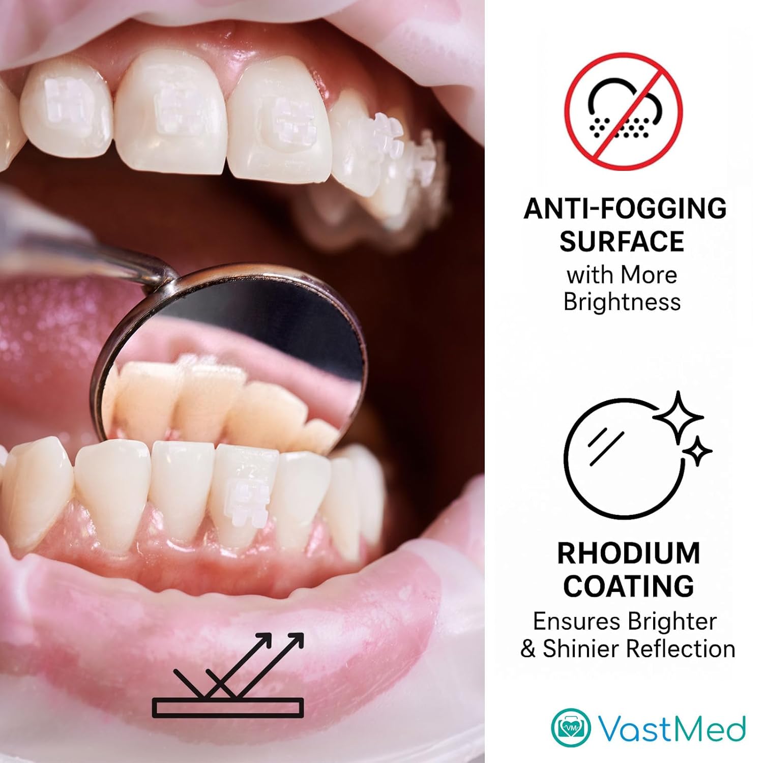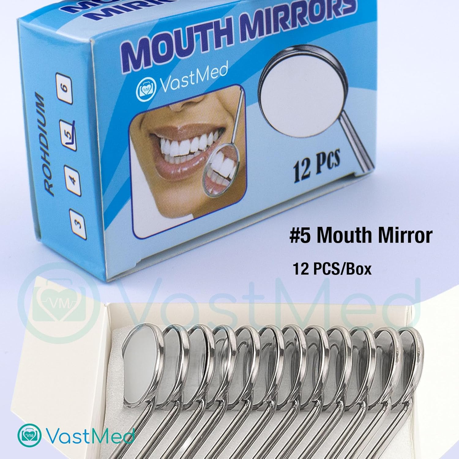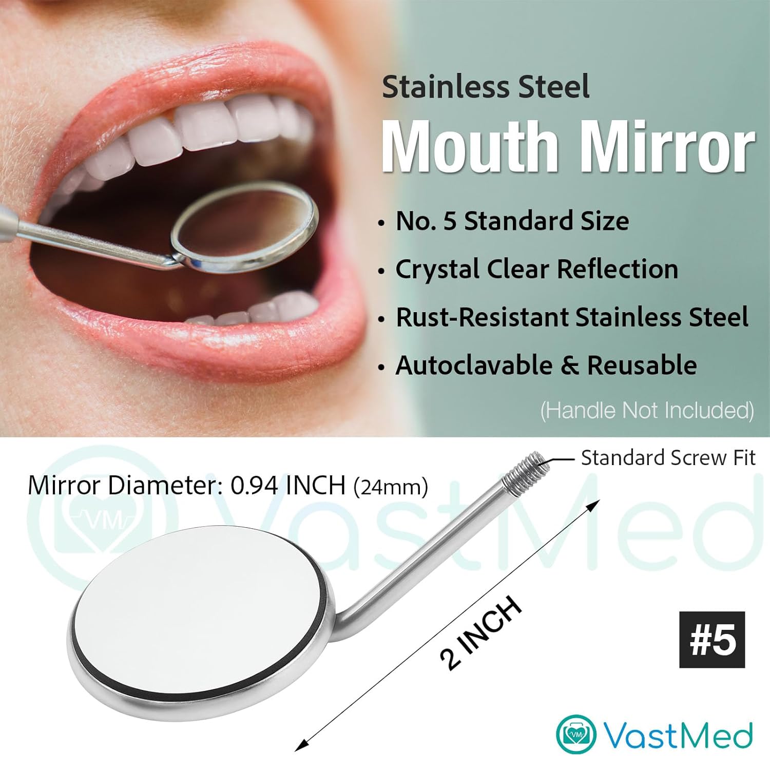 12 PCs Dental Anti-Fog Mouth Mirrors #5 (24mm) by VASTMED | Stainless Steel Dental Exam Mirror | Professional Dentist Mirror Tool | Autoclavable Oral Examination