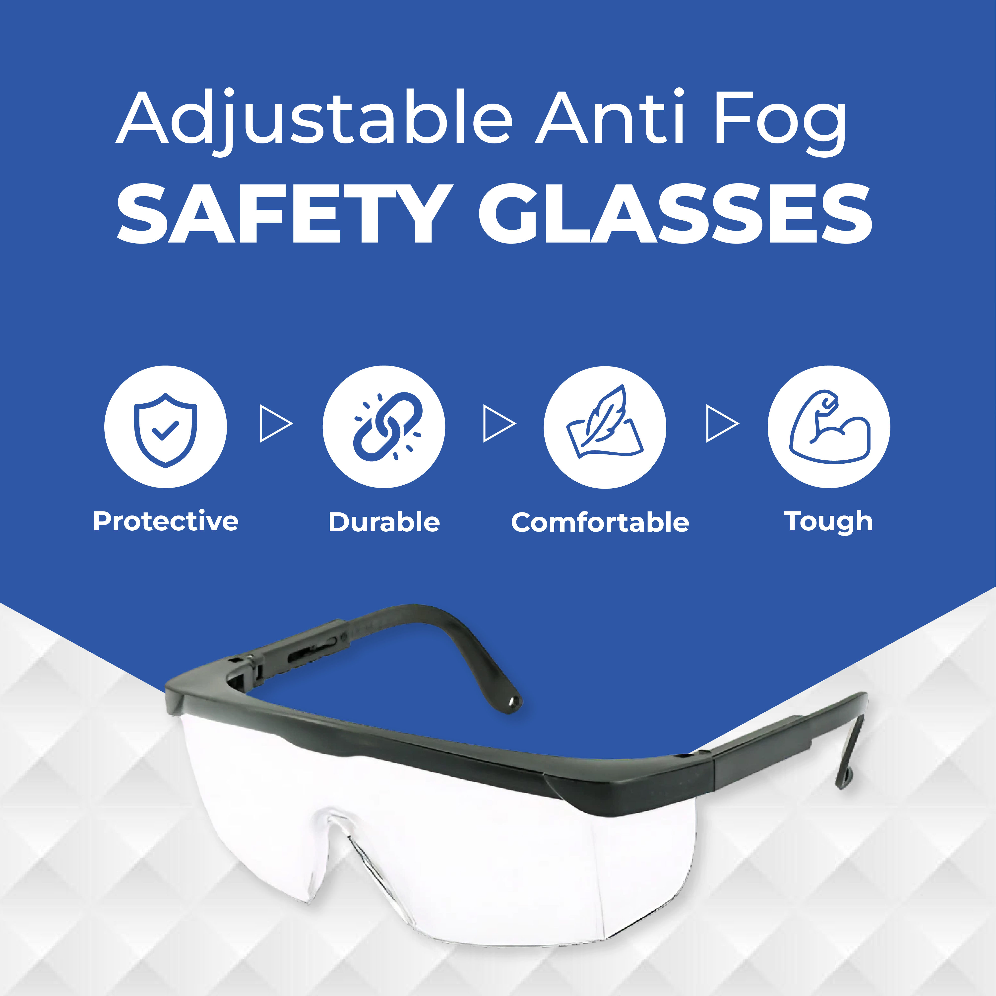 Anti Fog Safety Glasses with Adjustable Temples by Vastmed | Anti-Fog Goggles with Clear Lens Lightweight Protective Eyewear for Men Women | ANSI Z87.1 Certified Tactical Safety Goggles