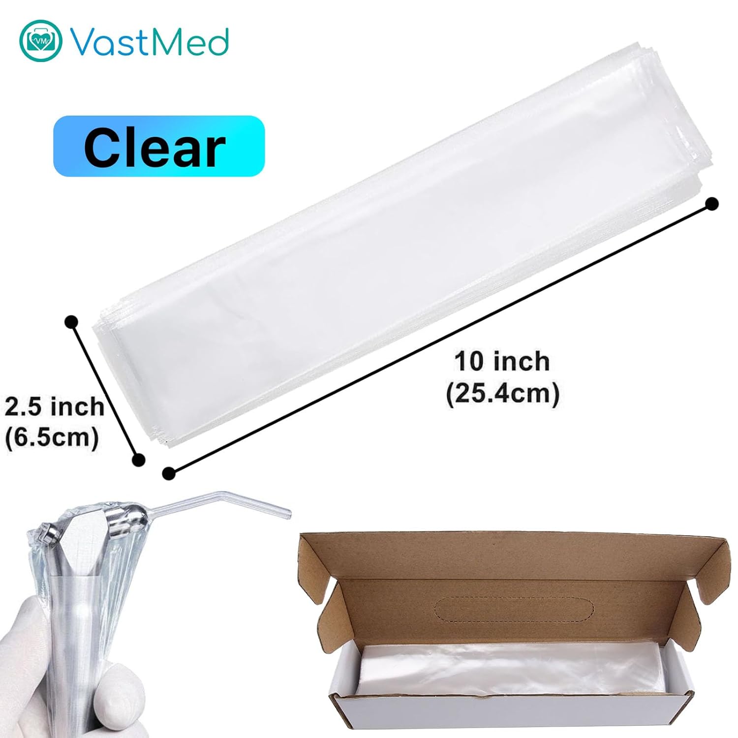 Dental 2.5″x10″ Air Water Syringe Sleeves with Precut Opening by Vastmed | Disposable Clear Plastic Protective Barrier