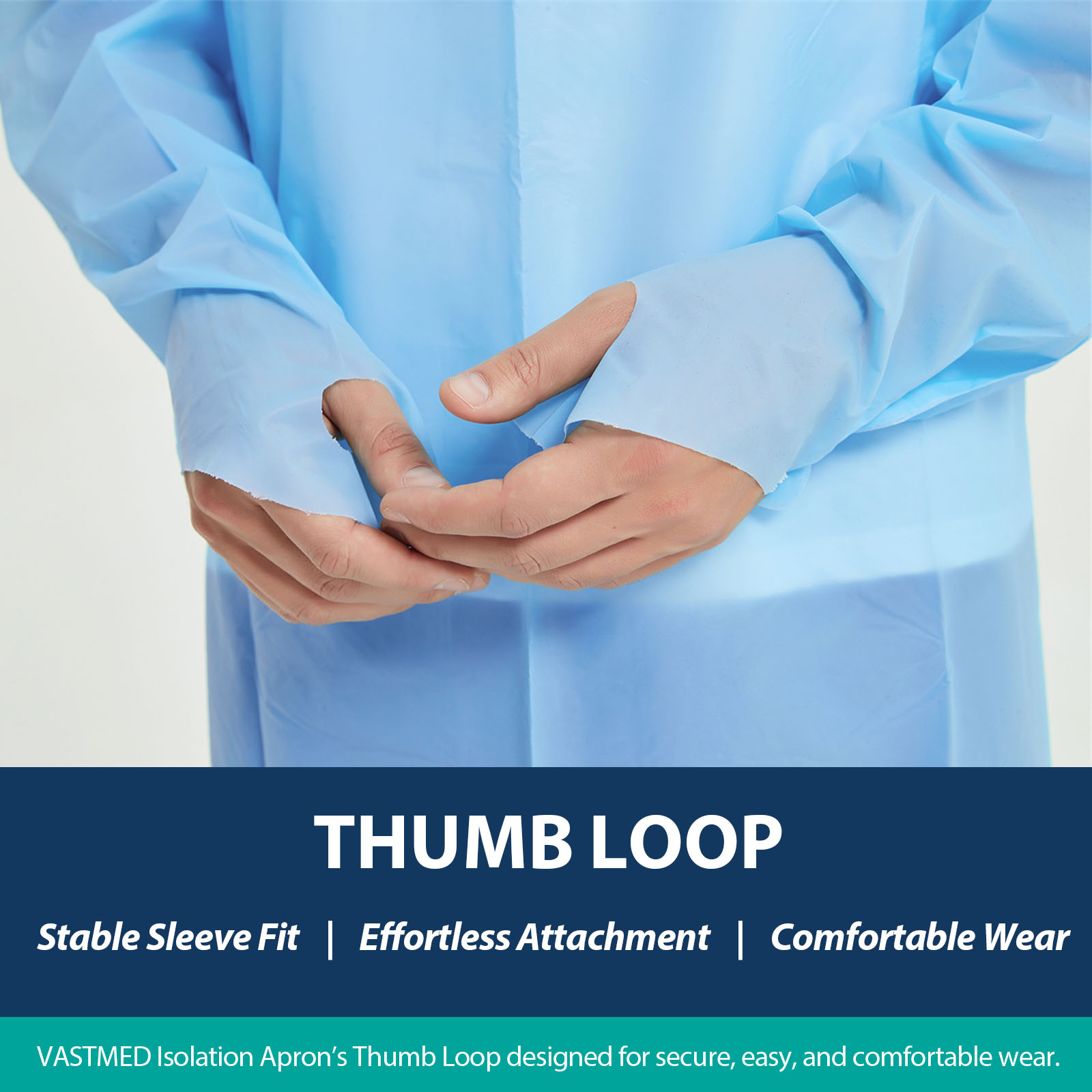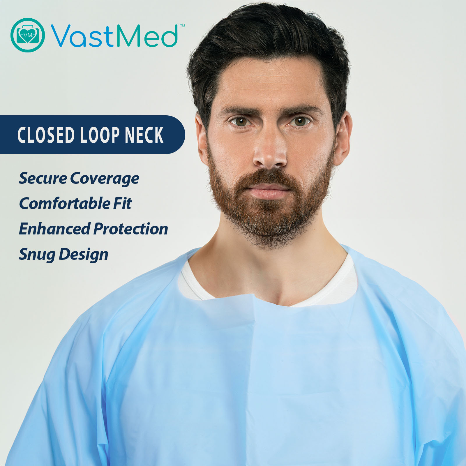 - Safety Protection – Personal safety is paramount, and VASTMED takes that seriously with our disposable apron. Our disposable hospital aprons provide the superior strength and protection you need against fluid transfer in isolation situations.