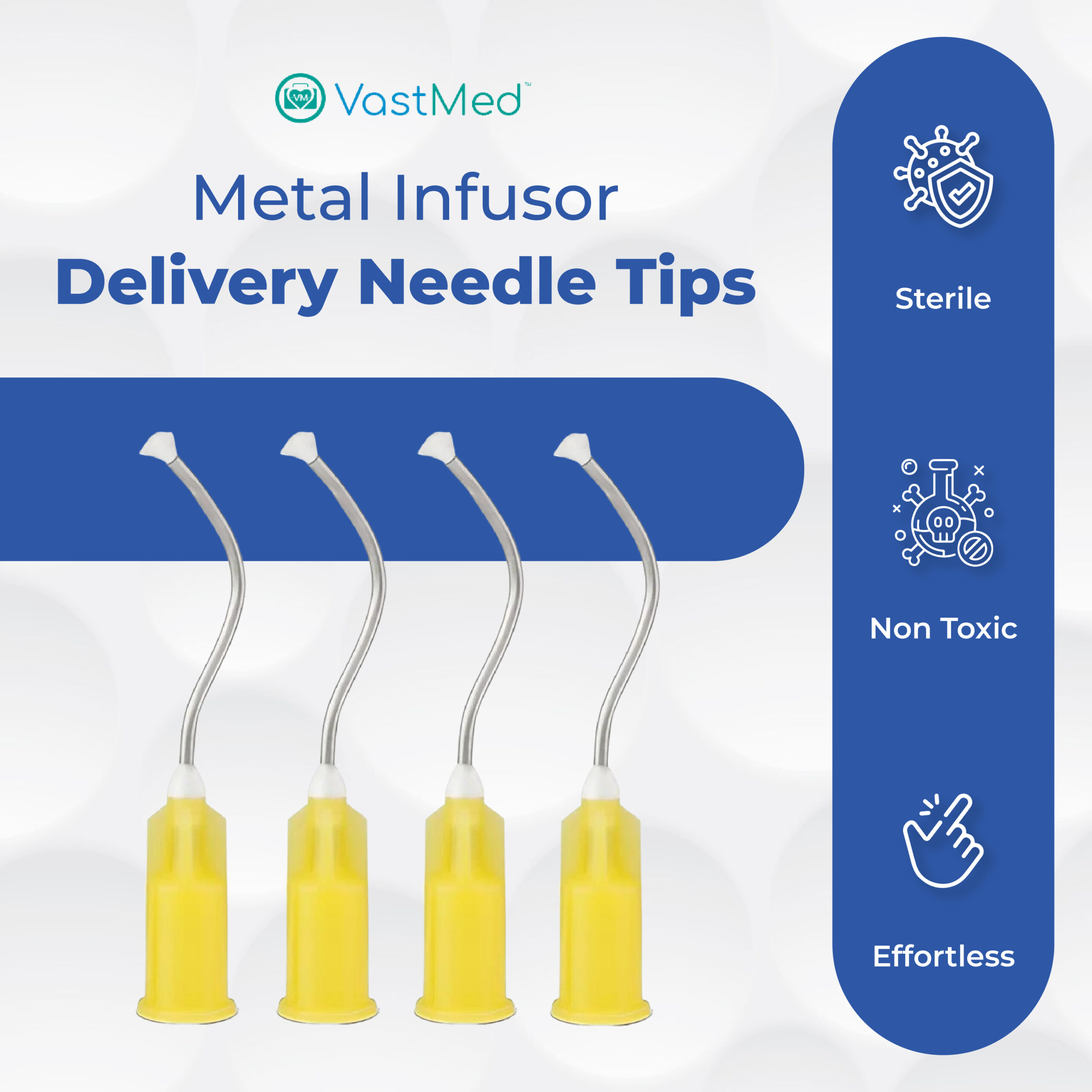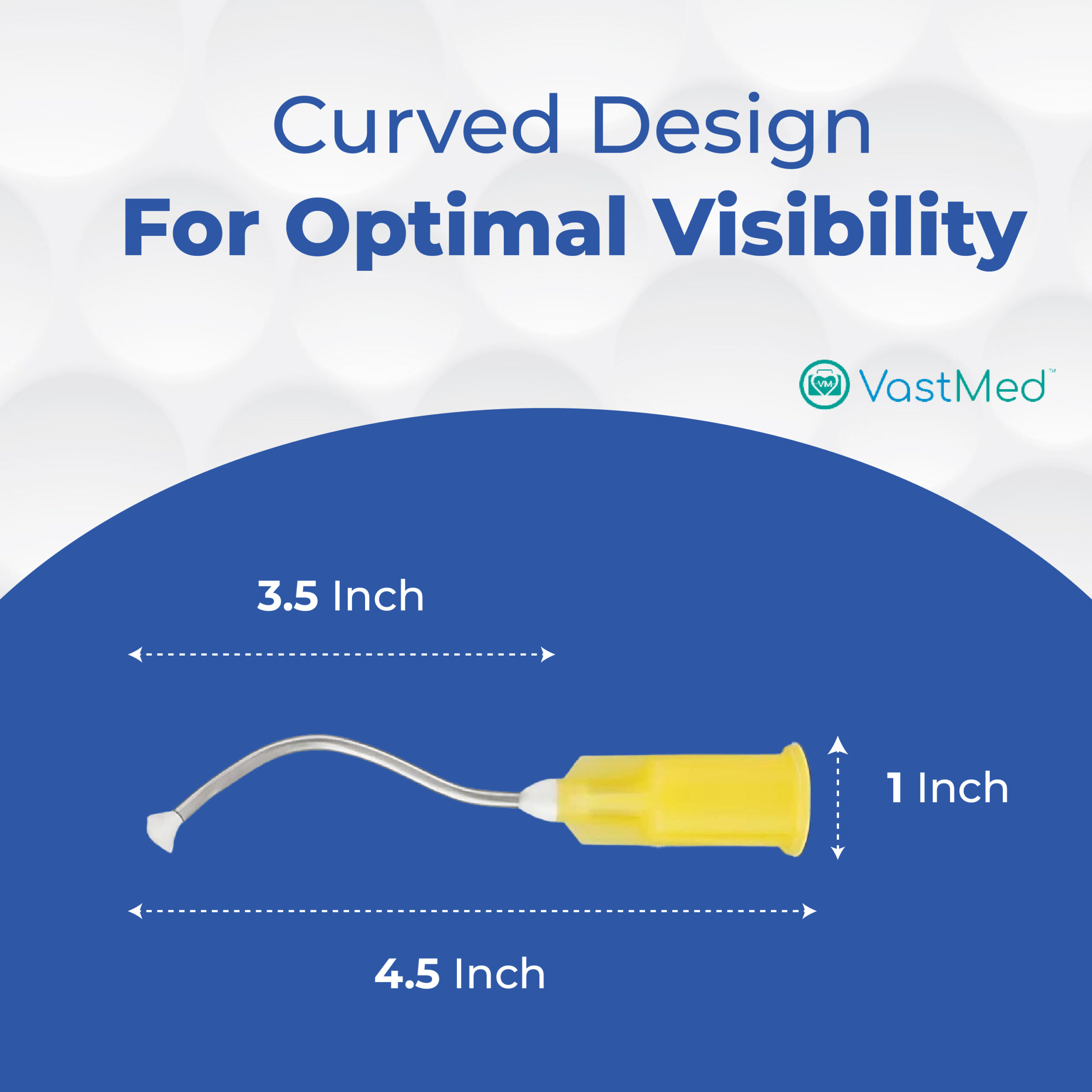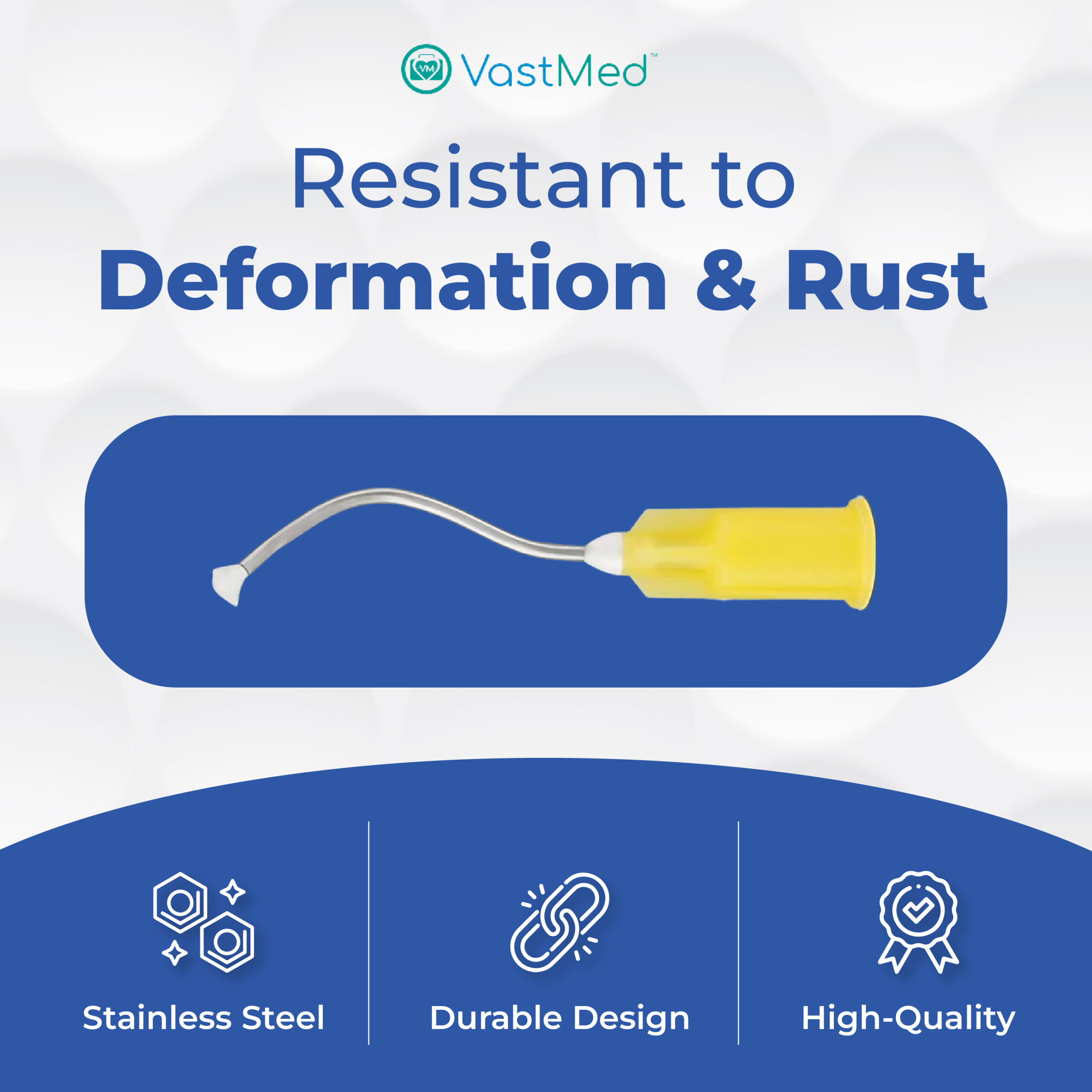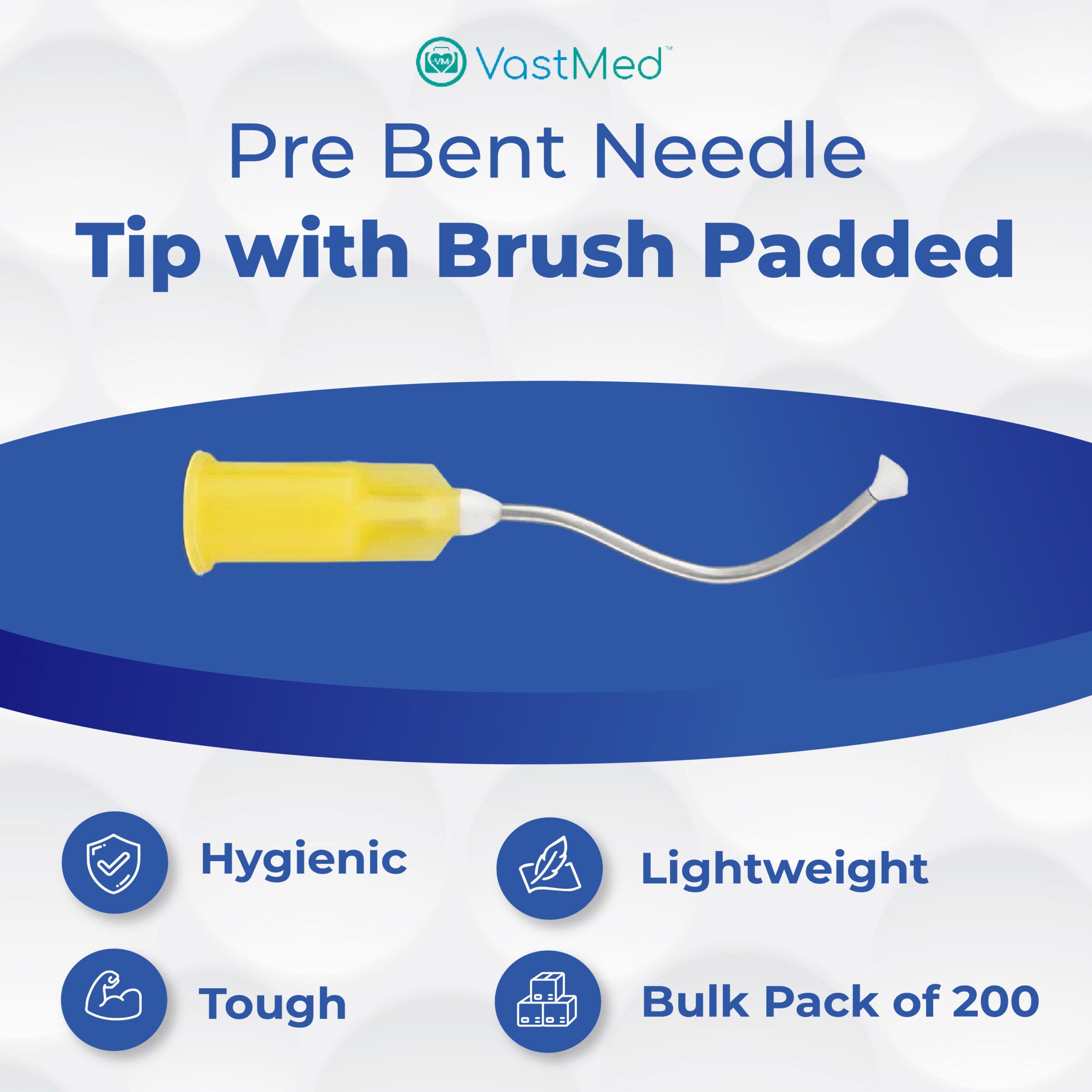 Dental Grade Pre Bent Needle Tip with Brush Padded 19g by VASTMED | Disposable Dental Pre-Bent Irrigation/Metal Infusor Delivery Needle Tips