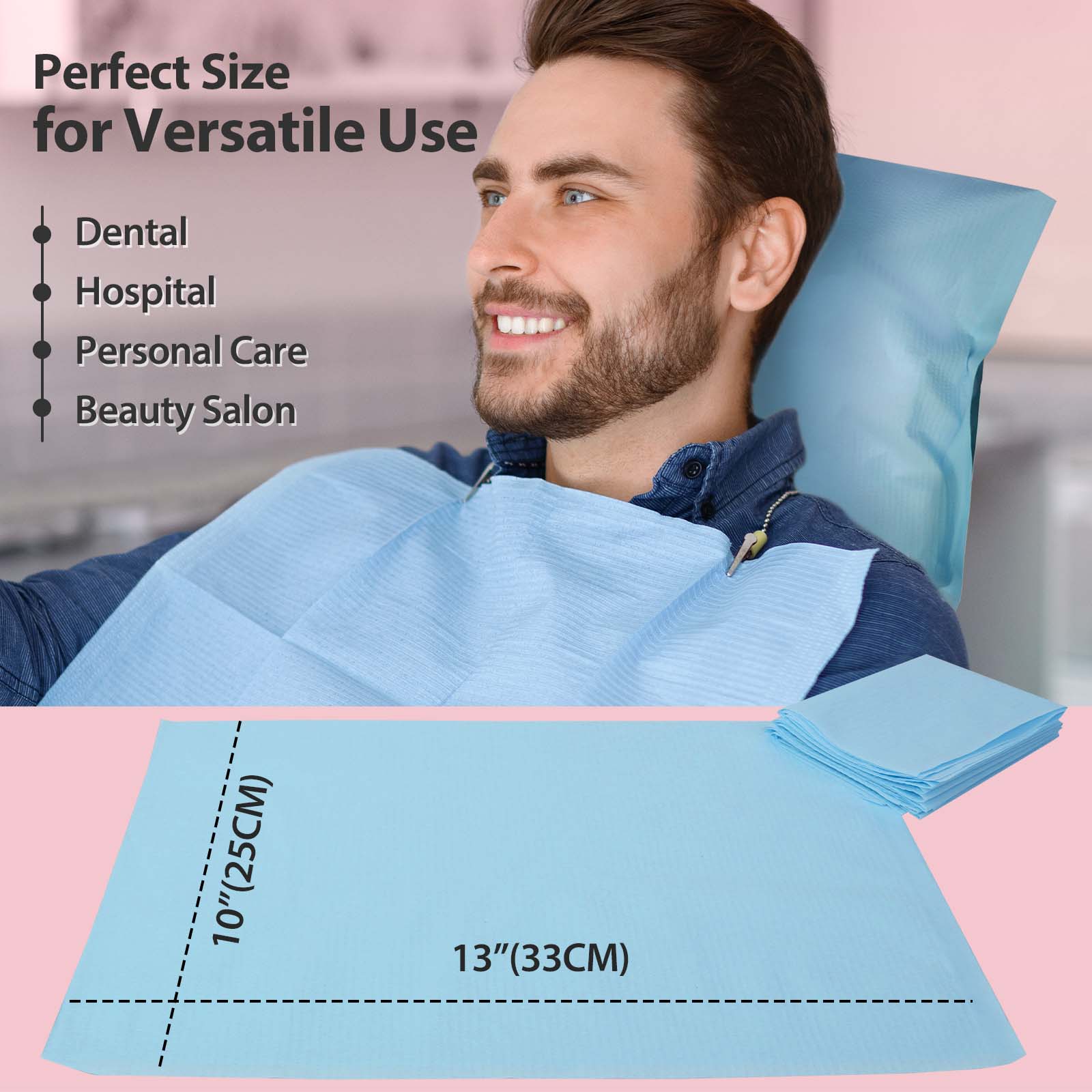 - Package Includes – Available in packs of 500. These paper headrest covers come in white, blue and pink with anti-slip and convenient (Universal Fit) — designed to meet professional medical and dental standards.