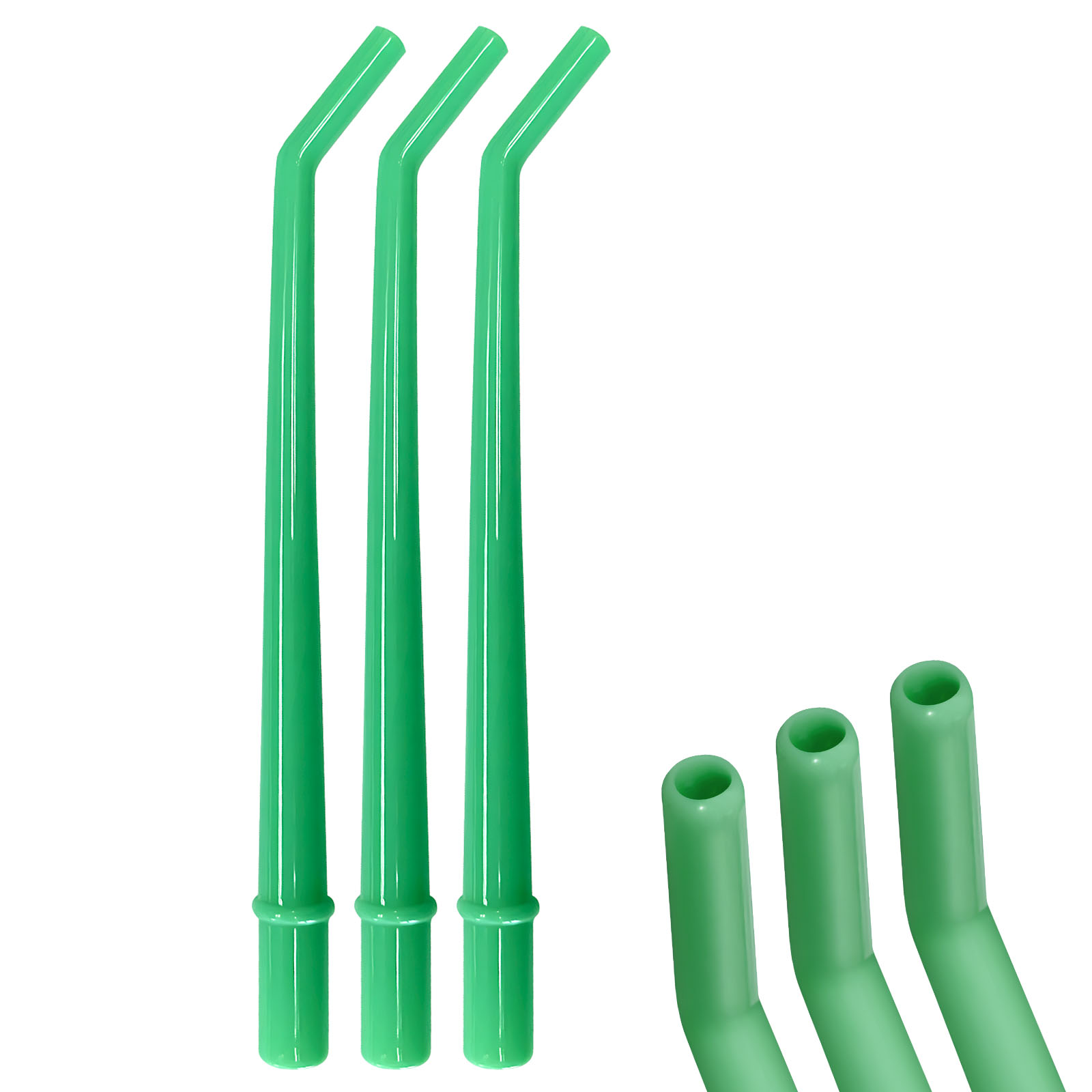 - Package Includes – Available in packs of 25 and 125, these dental surgical aspirator tips come in blue, green, and white colors, featuring sizes of 1/4″, 1/8″, and 1/16″ (universal fit) — designed to meet professional medical and dental standards.