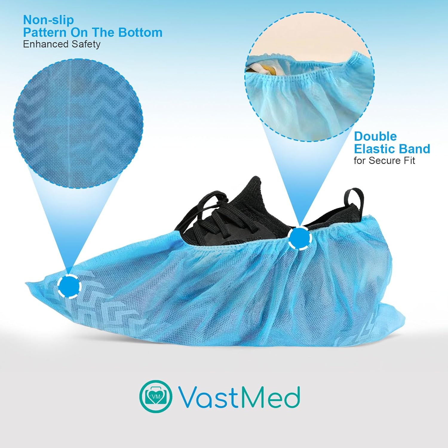 Disposable Anti-Slip PP Shoes Cover by VASTMED | 100% Non Latex, Non-Woven Shoe & Boot Covers for Indoors | Durable, Non-Slip, Treads, Water Resistant