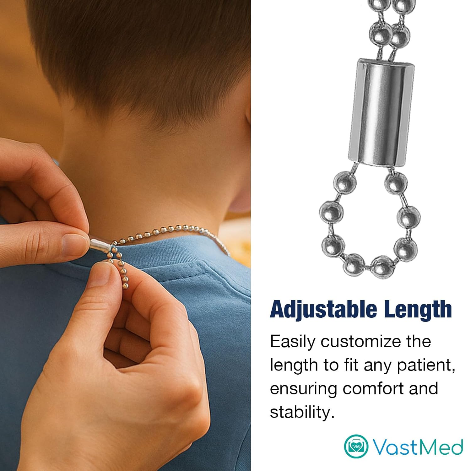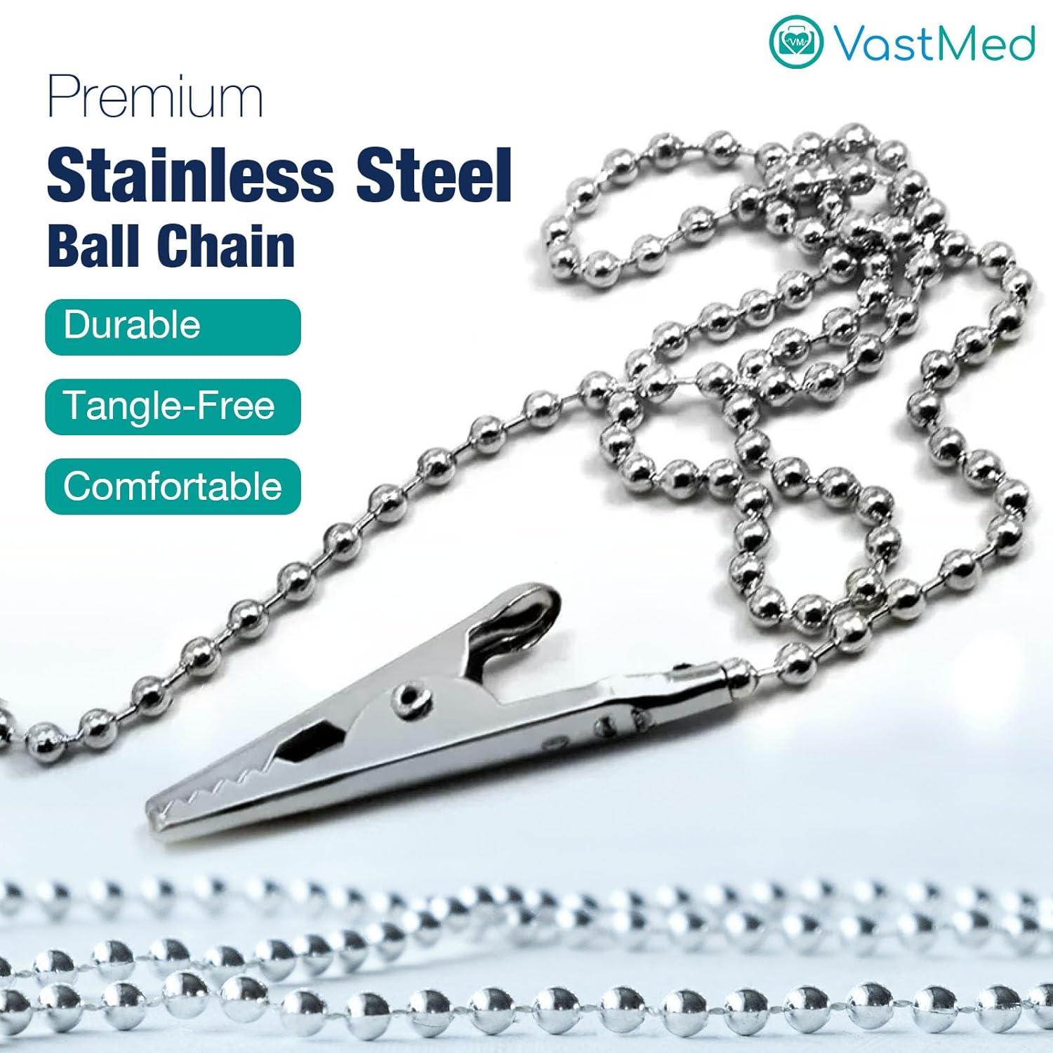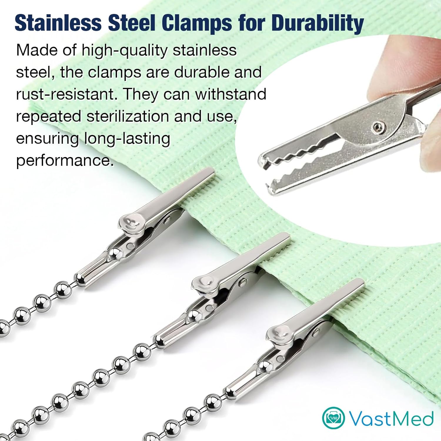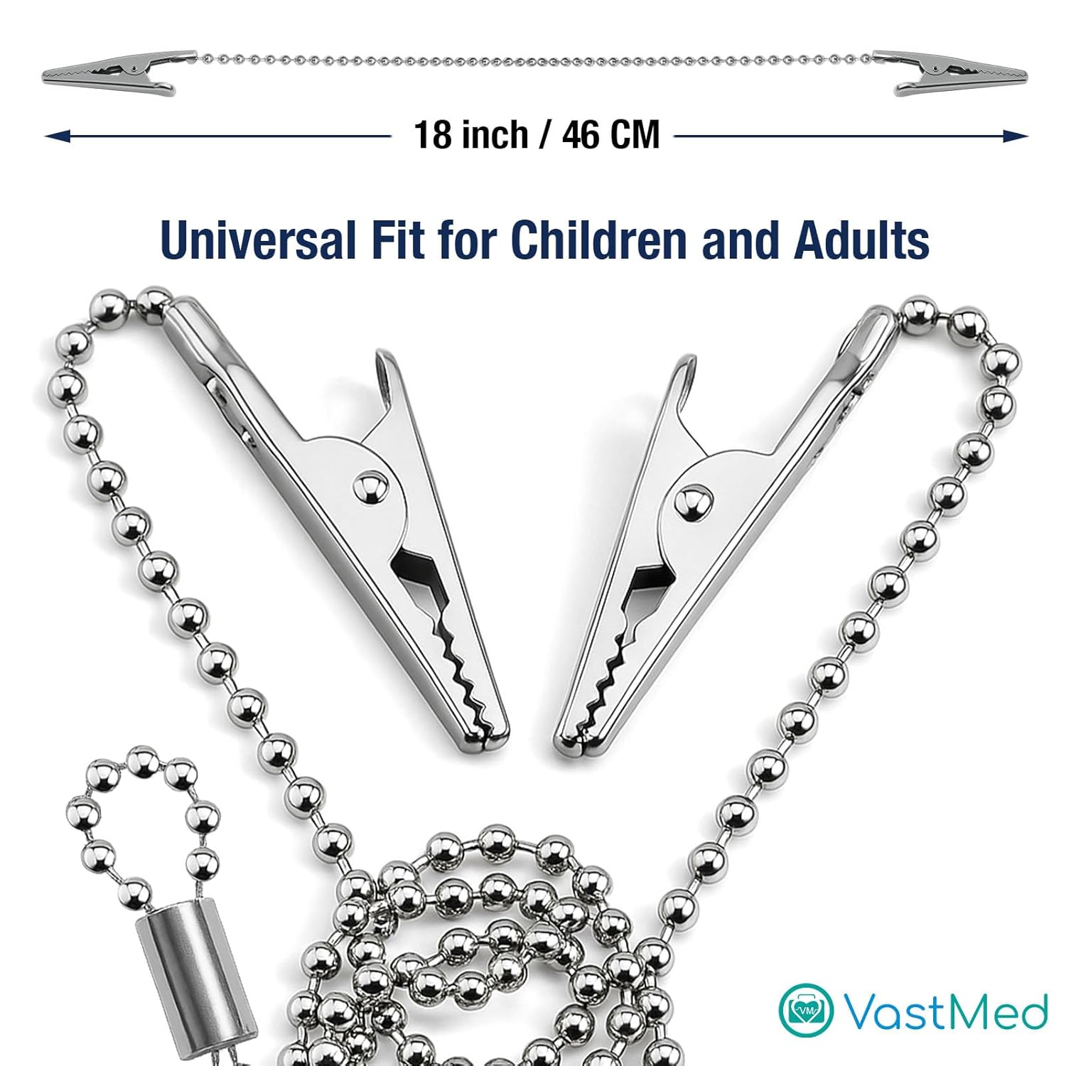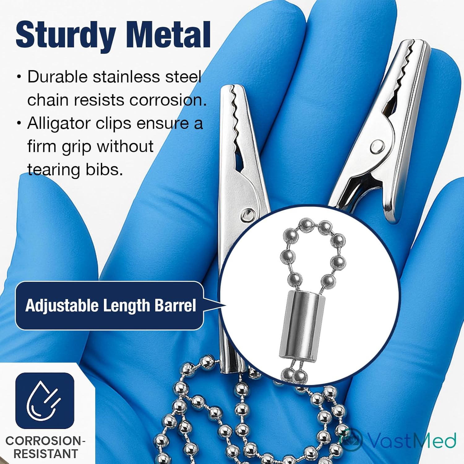 Disposable Bib Holders Clavable by Vastmed | Lightweight Stainless Steel Neck Holder Chain with Two Alligator Clamps to Hold Dental Bib