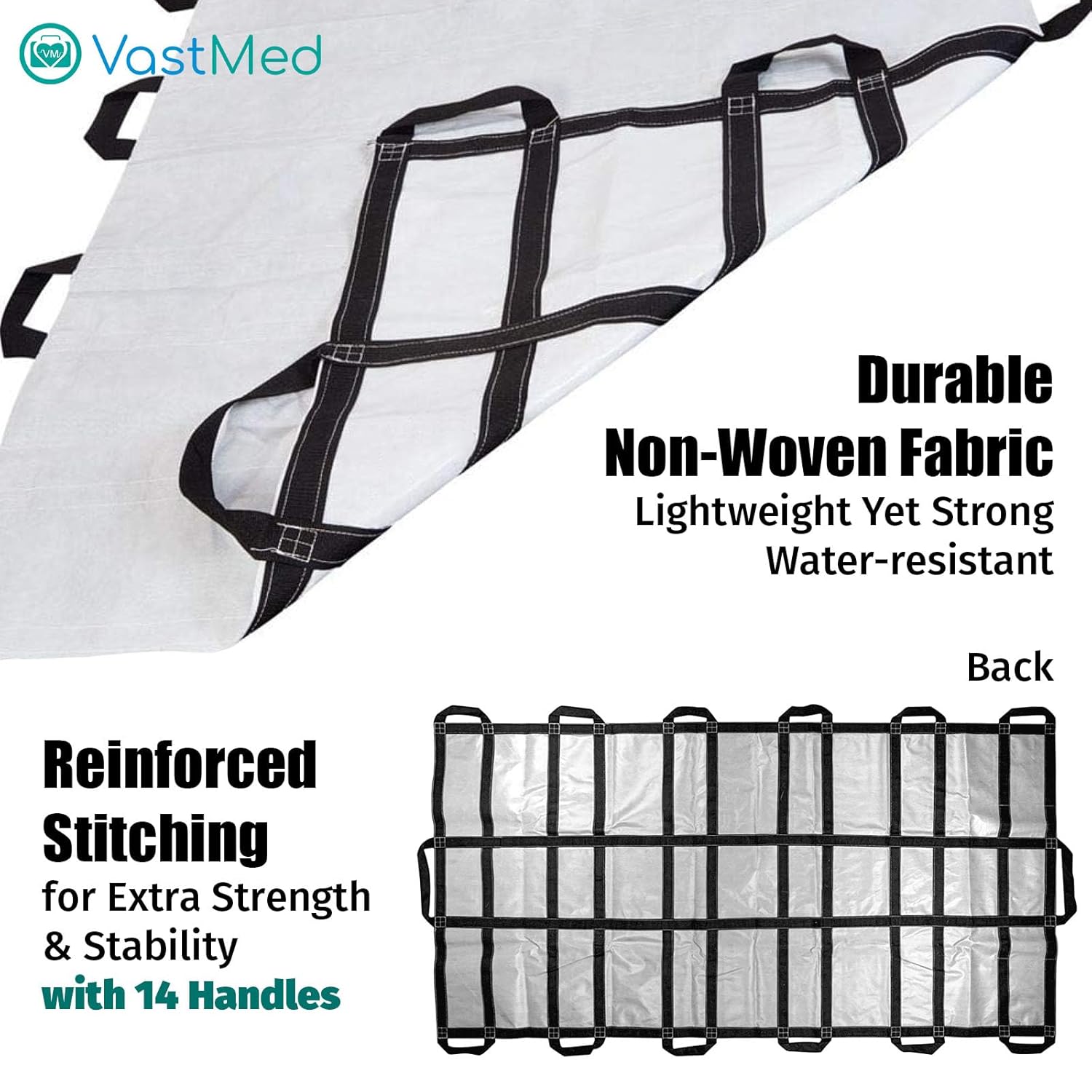 Portable Patient Transport Unit 40”x80” by VASTMED | Heavy-Duty Waterproof, Leak-Proof, Non-Woven Fabric | 14 Reinforced Handles | Holds Up to 1000 lbs. | Secure & Comfortable