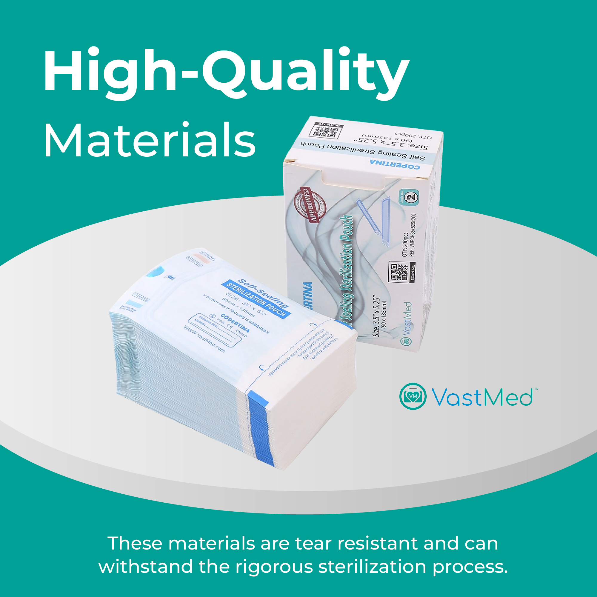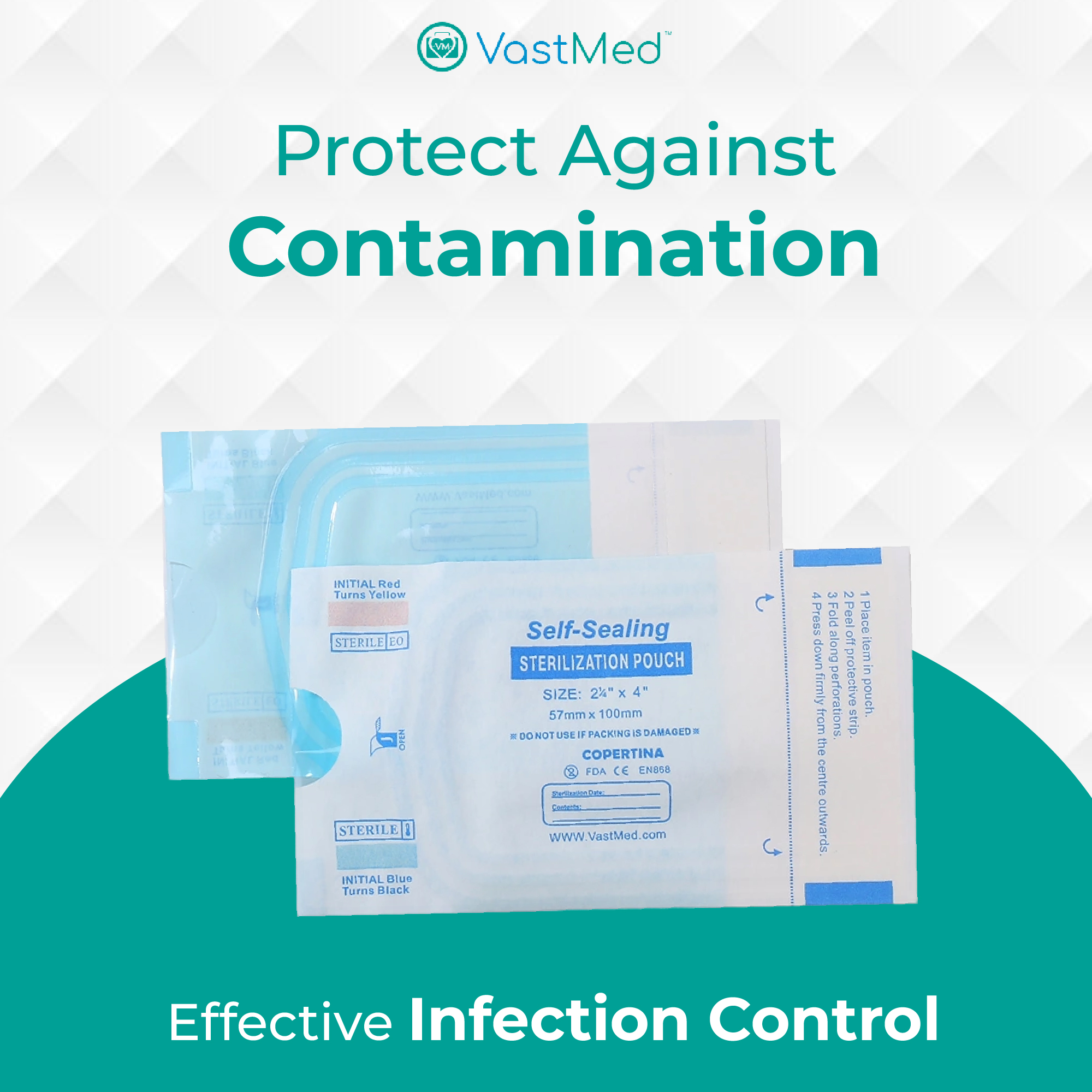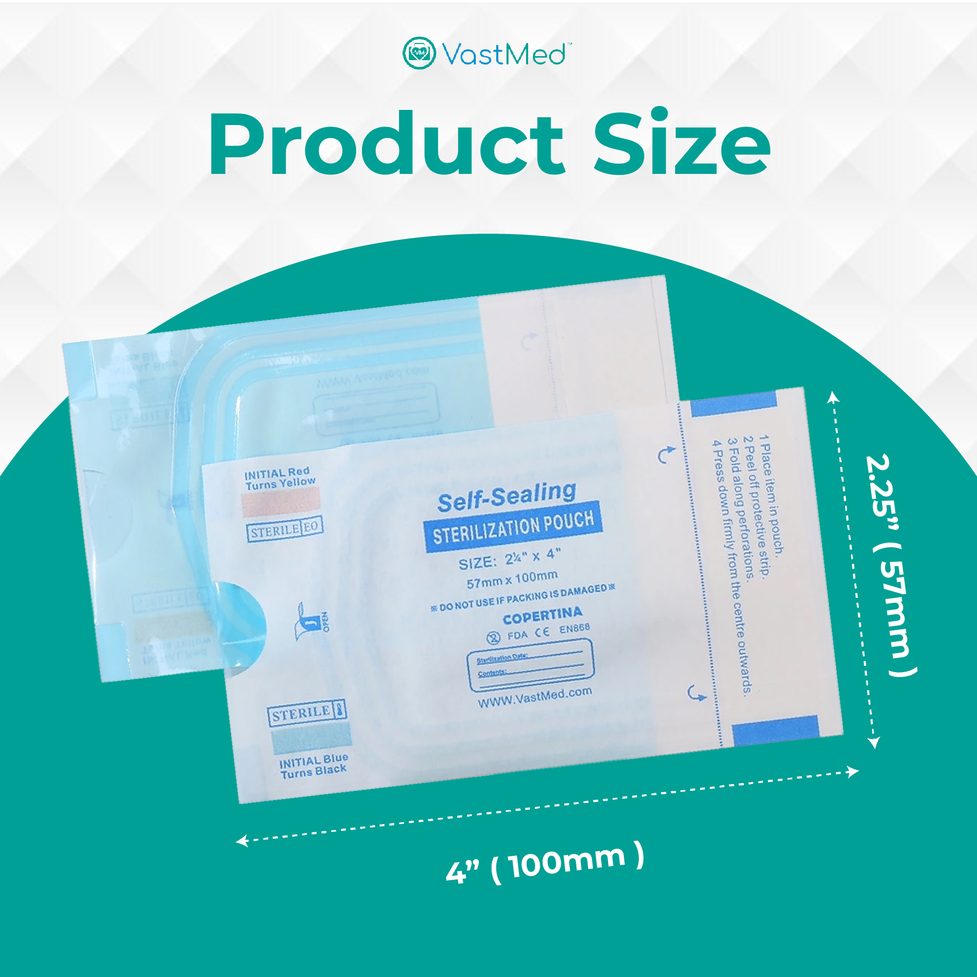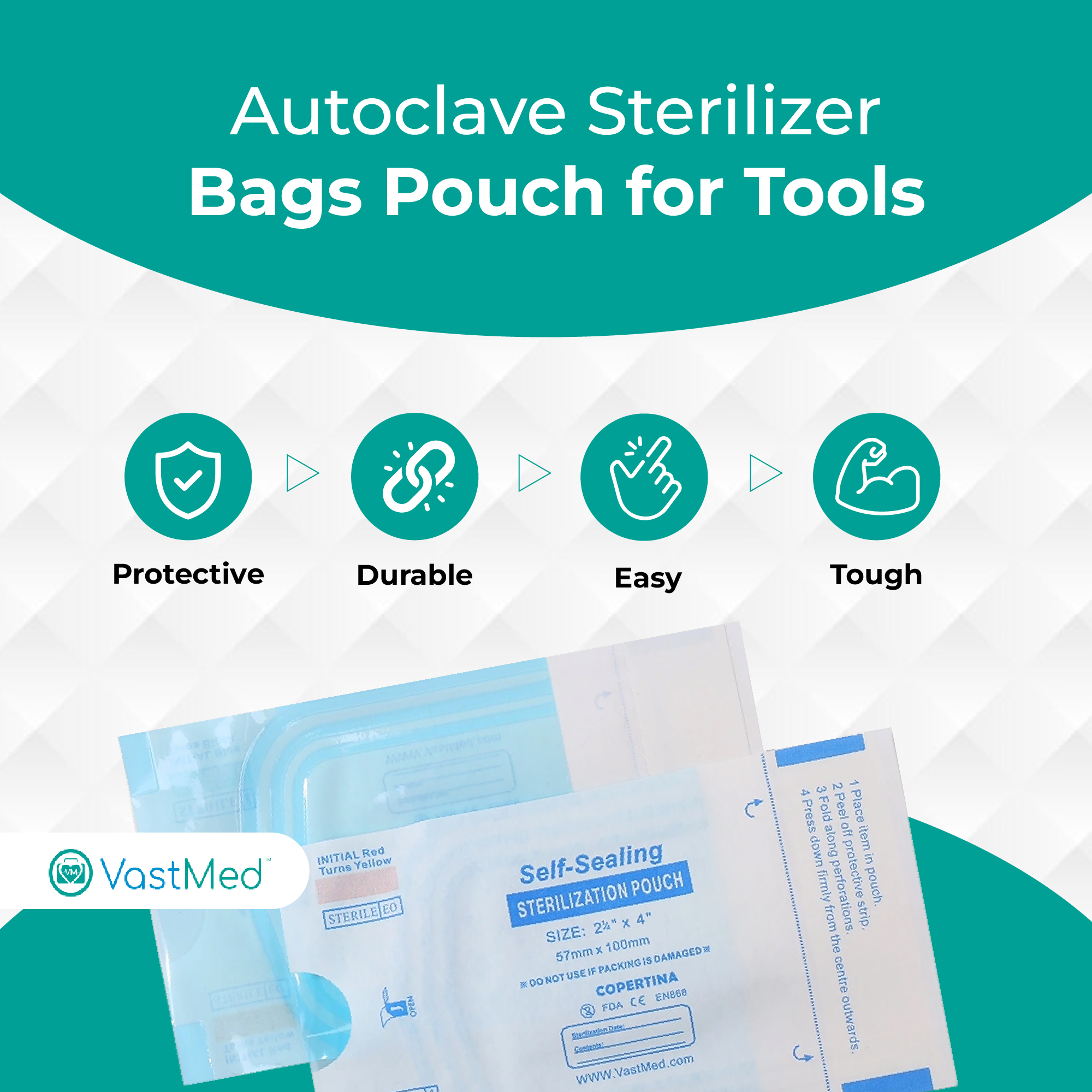 Self Sealing Sterilization Pouches by Vastmed | Dual Indicators Autoclave Sterilizer Bags for Dental Medical Instruments Clean Tools