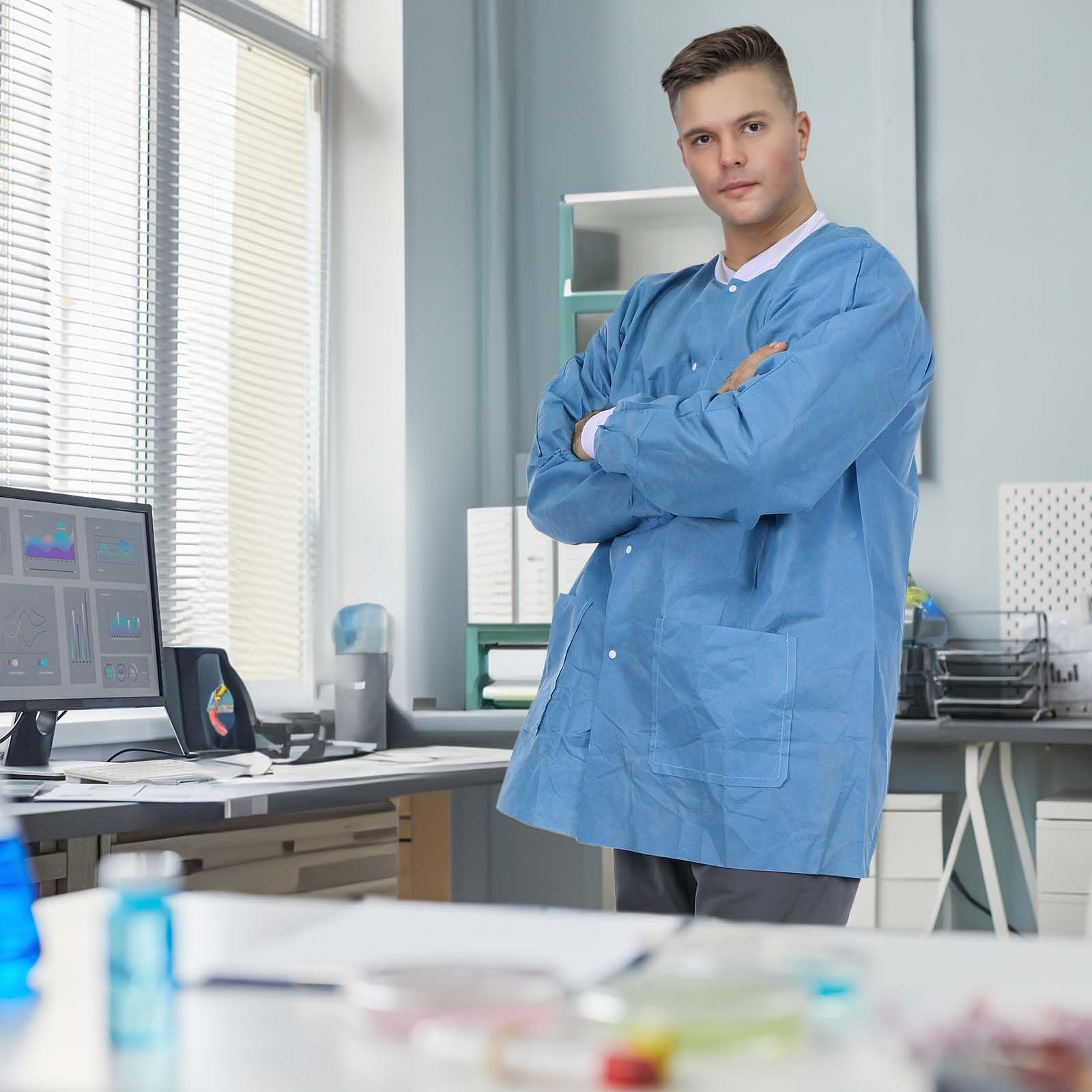 VASTMED Dental Disposable Lab jackets | Durable SMS Soft Knit Cuffs & Collar with 3 Pockets | Medical Lab Jacket